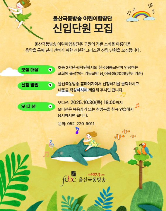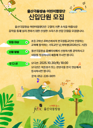 울산극동방송 어린이합창단 하반기 신입단원모집