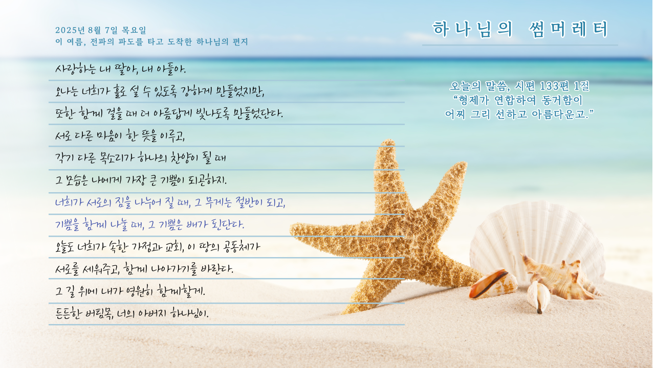 [사랑의뜰안] 8월 7일 목요일, 하나님의 썸머레터