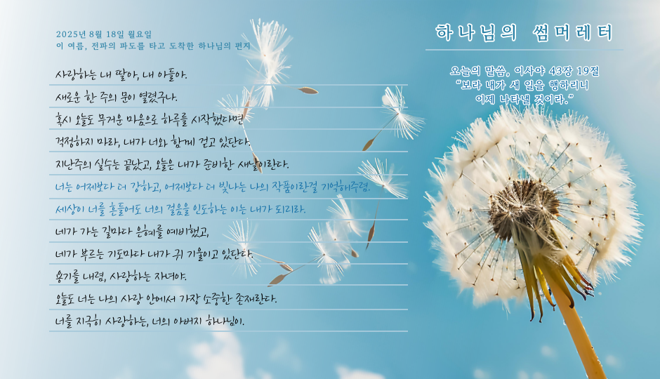 [사랑의뜰안] 8월 19일 화요일, 하나님의 썸머레터