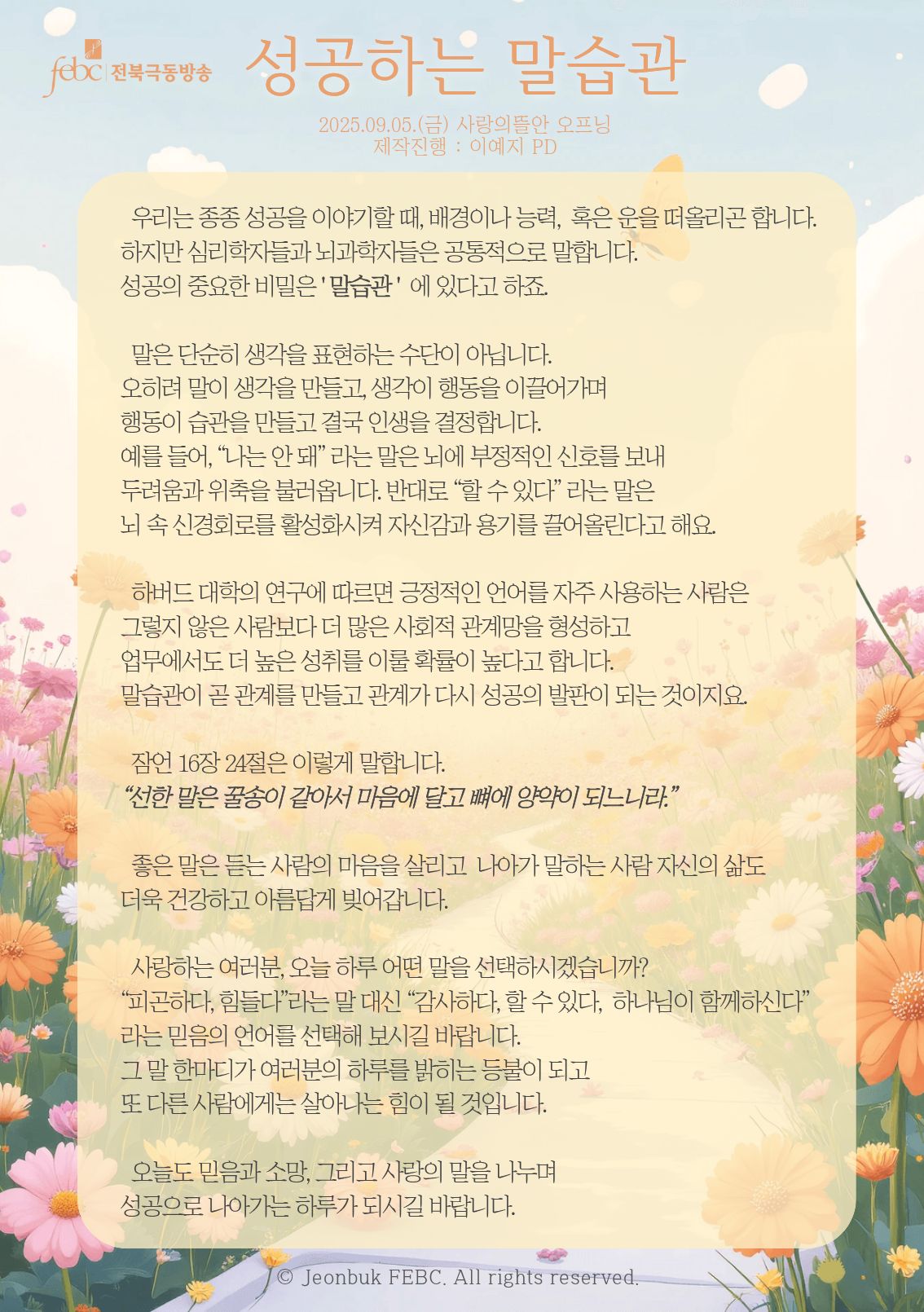 [전북] 25.09.05(금) 사랑의뜰안 오프닝 "성공하는 말습관"