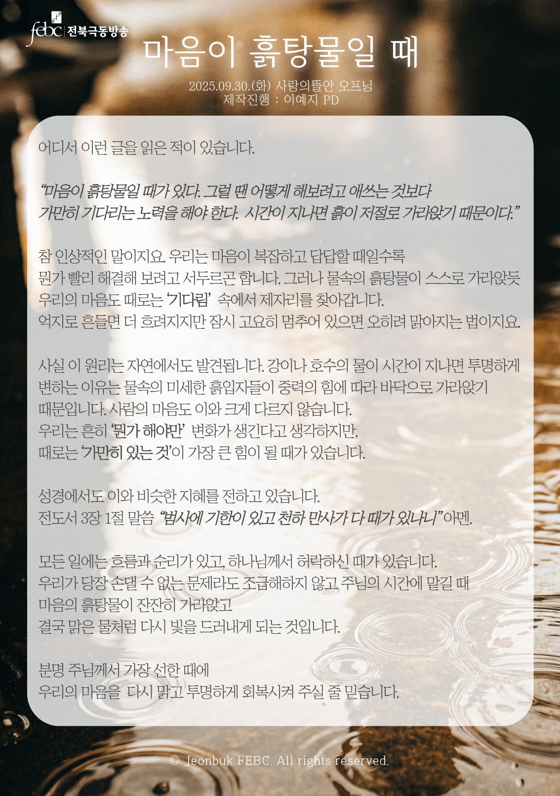 [전북] 25.09.30.(화) 사랑의뜰안 오프닝 "마음이 흙탕물일 때"