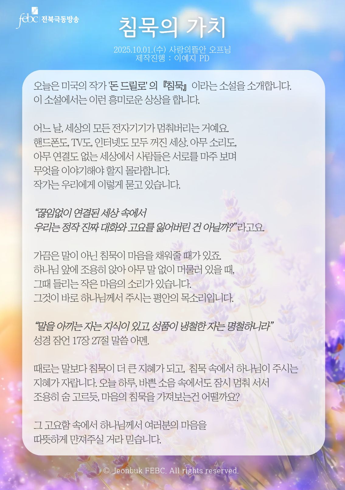 [전북] 25.10.01.(수) 사랑의뜰안 오프닝 "침묵의 가치"