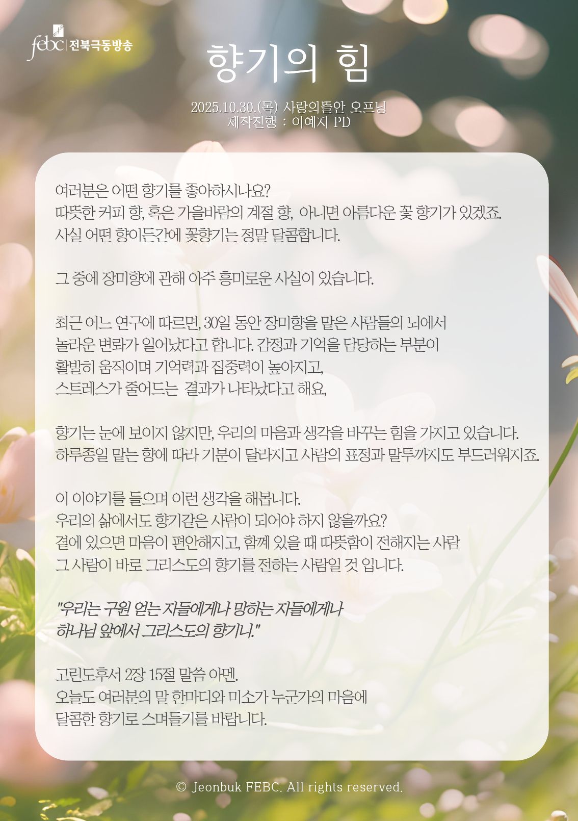 [전북] 25.10.30.(목) 사랑의뜰안 오프닝 "향기의 힘"