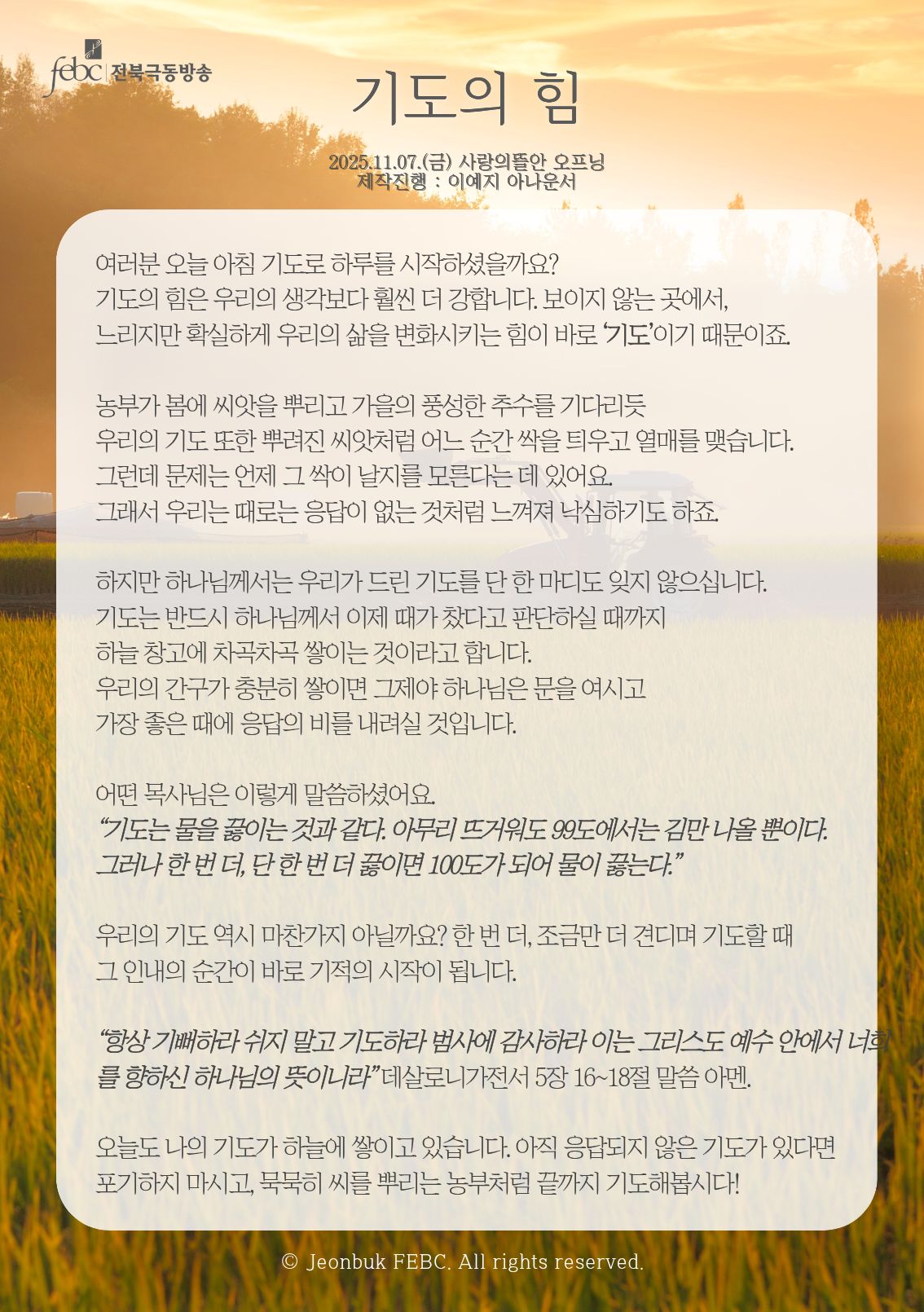 [전북] 25.11.07.(금) 사랑의뜰안 오프닝 "기도의 힘"