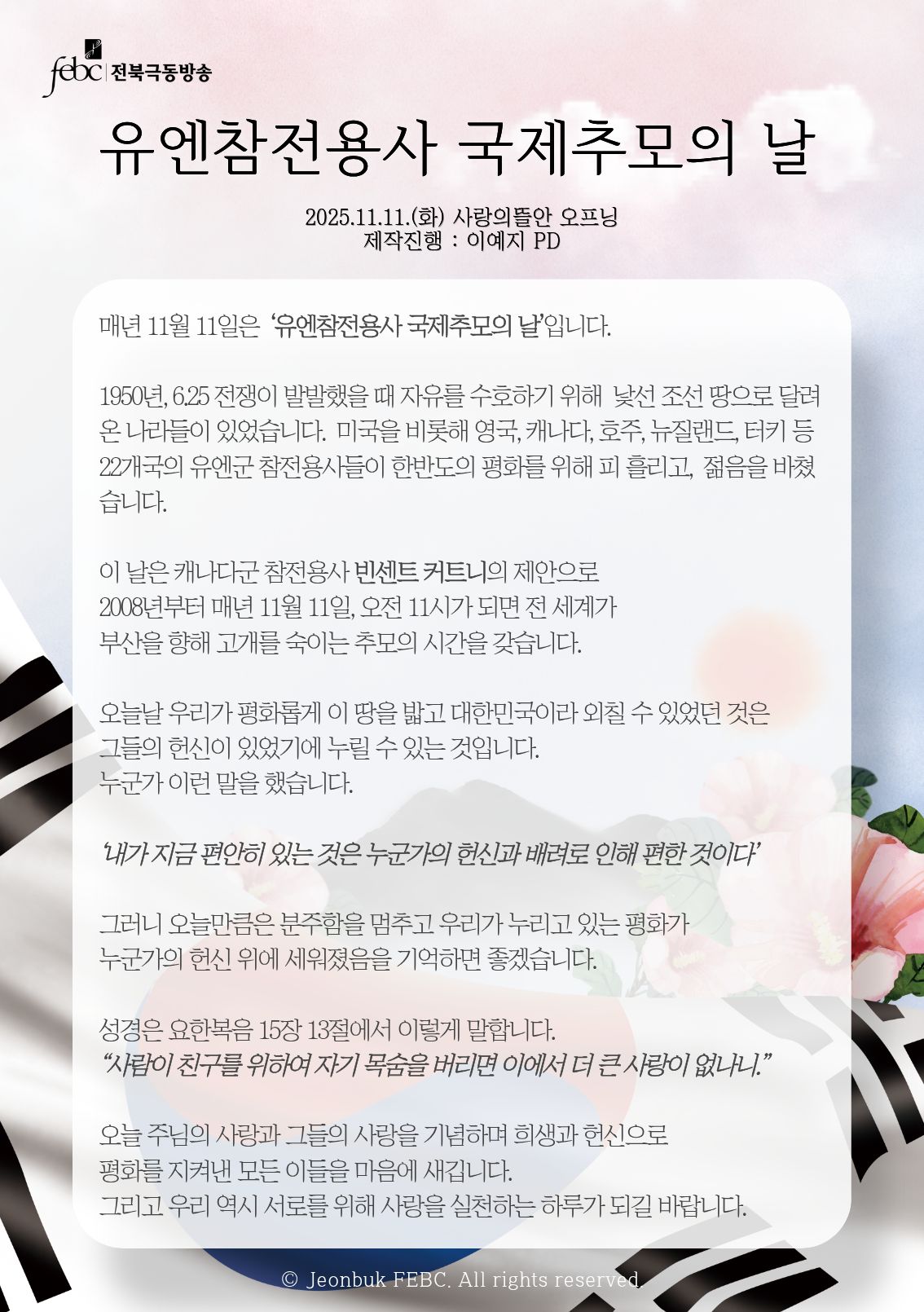 [전북] 25.11.11.(화) 사랑의뜰안 오프닝 "유엔참전용사 국제추모의 날"