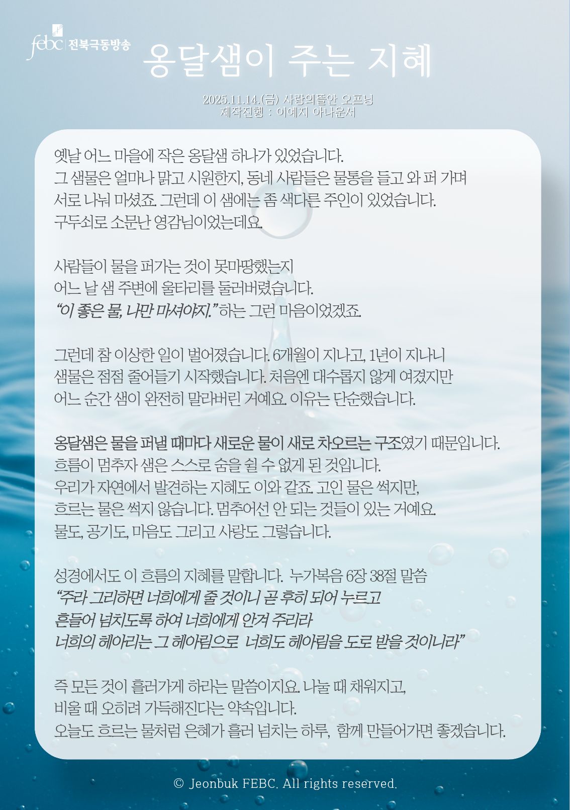 [전북] 25.11.14.(금) 사랑의뜰안 오프닝 "옹달샘이 주는 지혜"