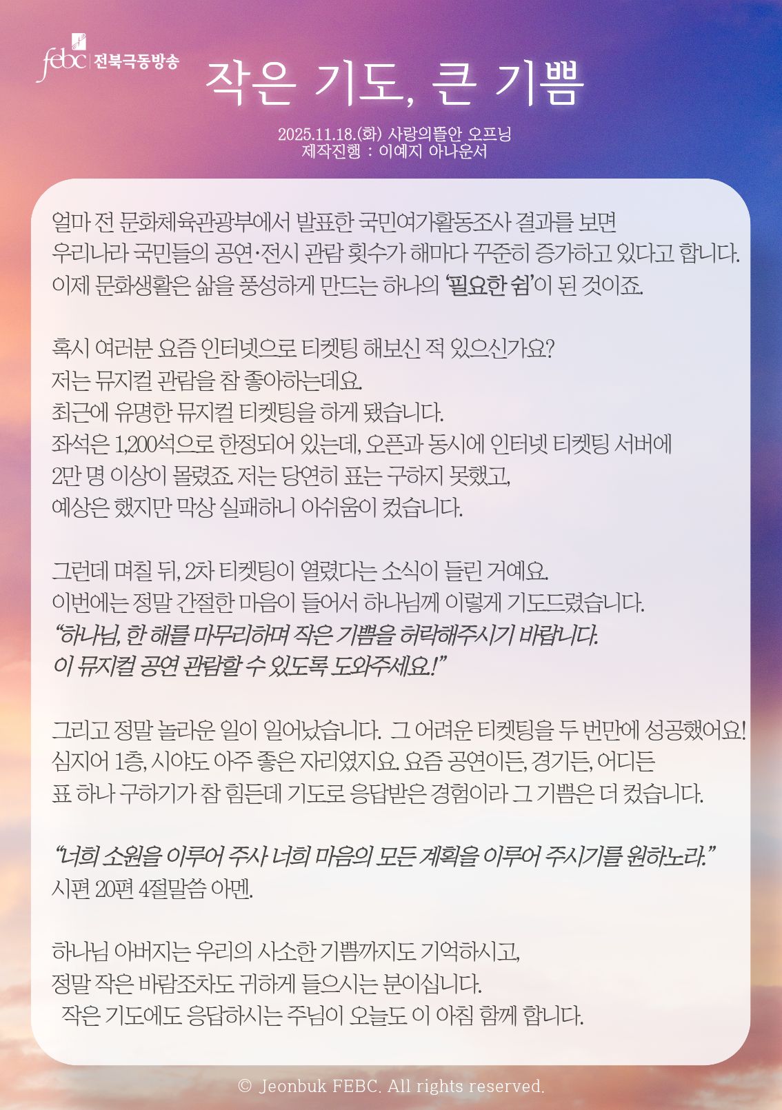 [전북] 25.11.18.(화) 사랑의뜰안 오프닝 "작은 기도, 큰 기쁨"