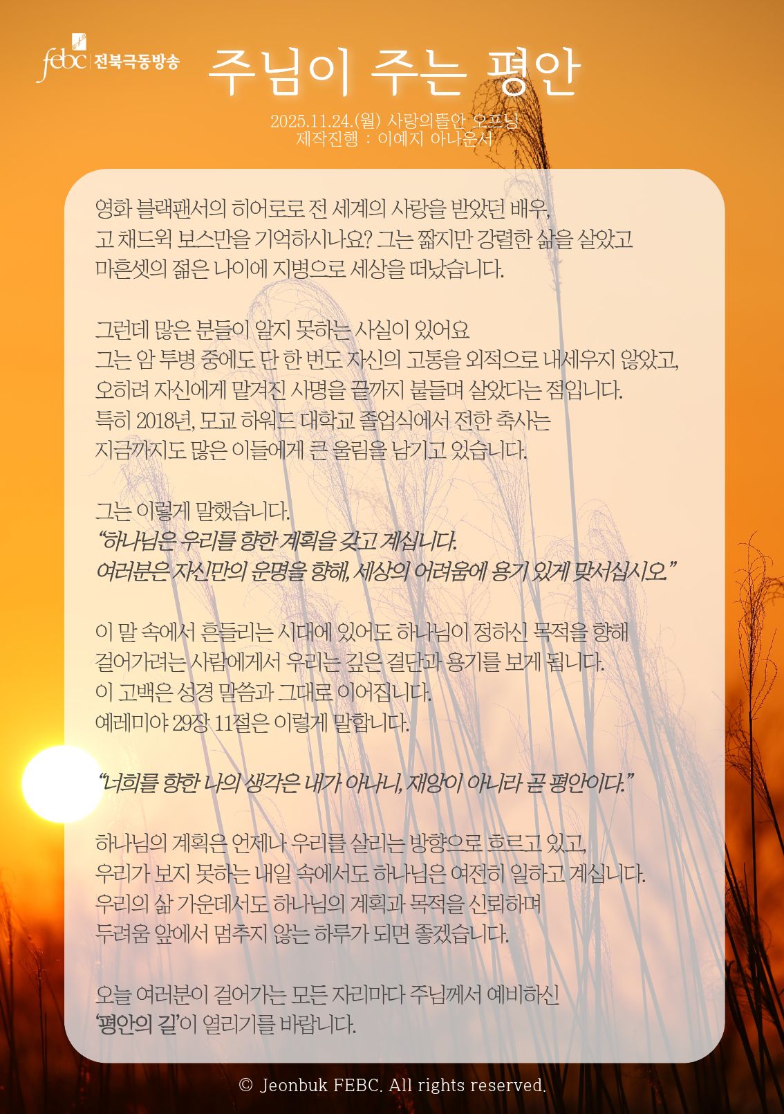 제작진행 : 전북극동방송 이예지 아나운서