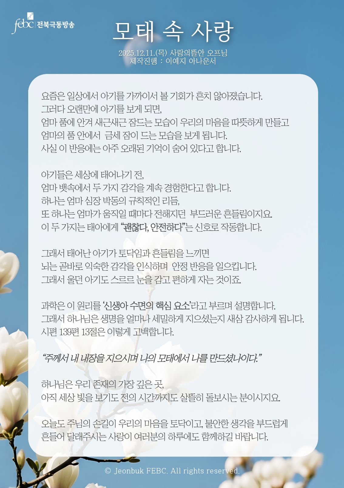 [전북] 25.12.11.(목) 사랑의뜰안 오프닝 "모태 속 사랑"