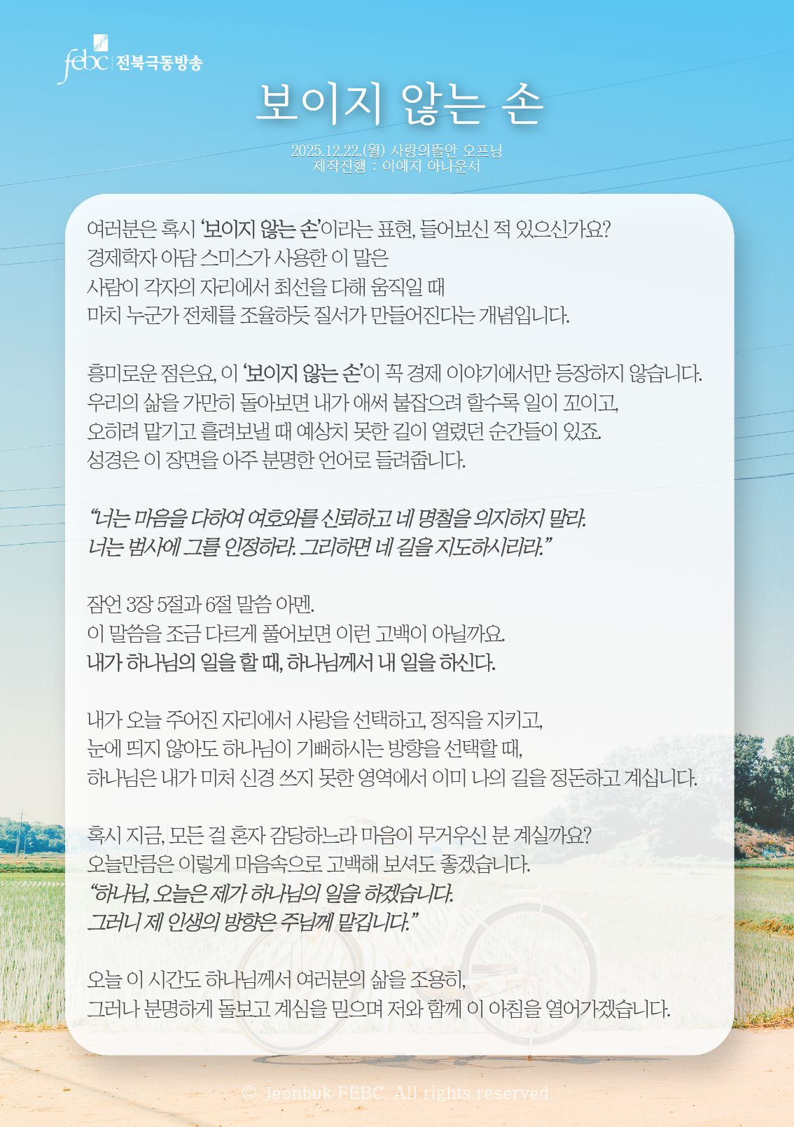 [전북] 25.12.22.(월) 사랑의뜰안 오프닝 "보이지 않는 손"