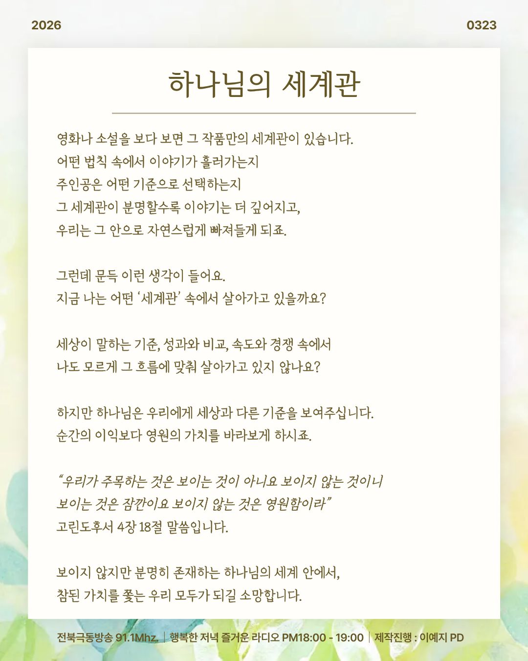 전북극동방송 행복한 저녁 즐거운 라디오!